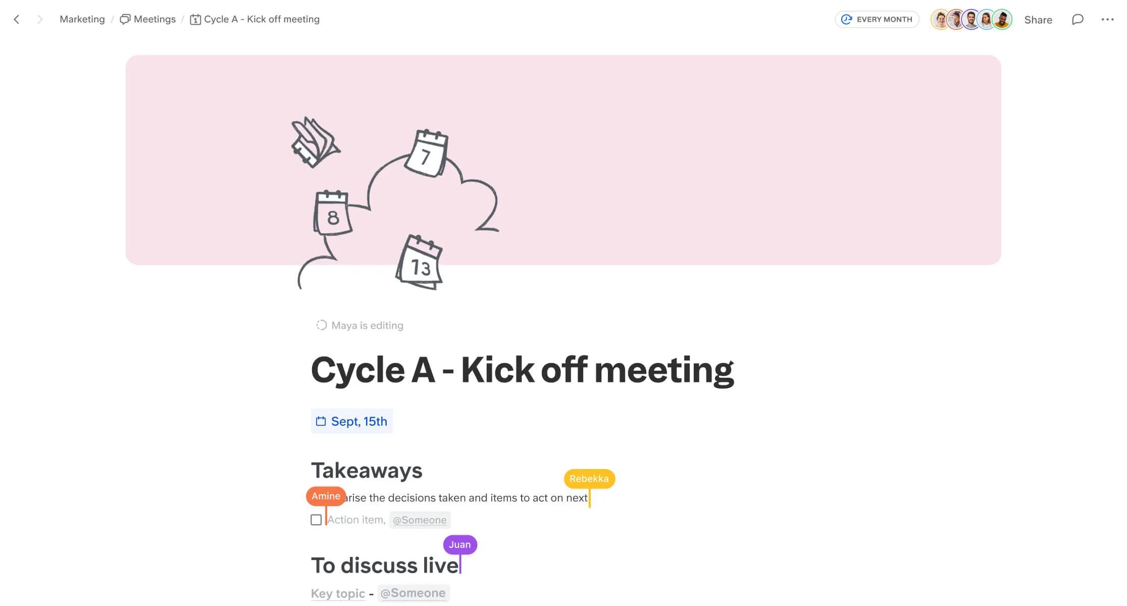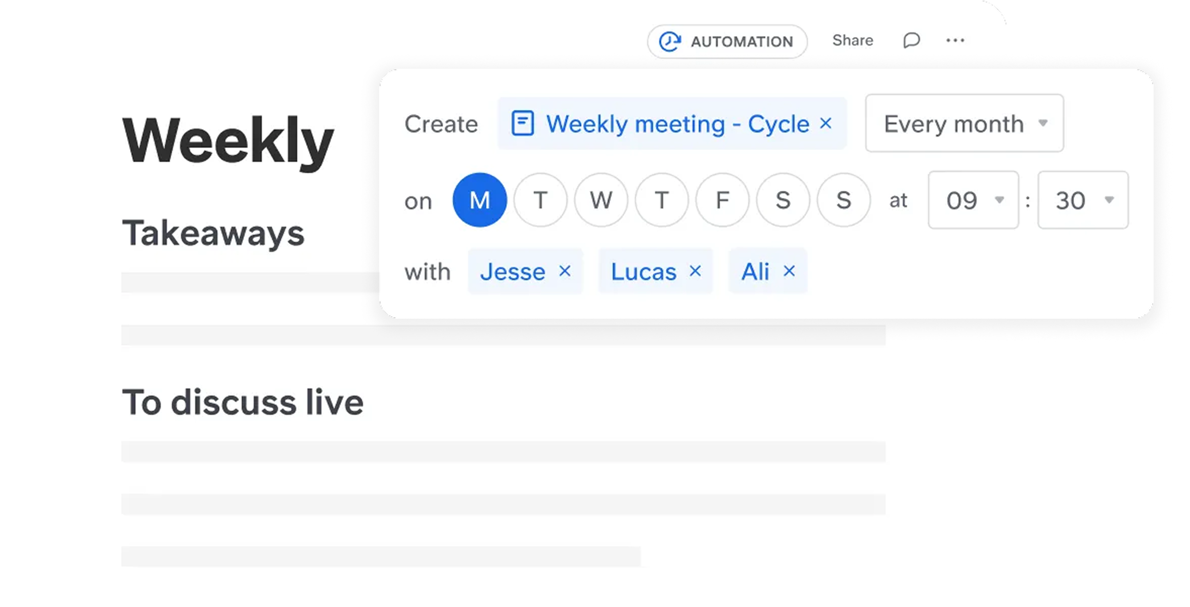 No more wasting time on repetitive meeting docs. Get timely reminders to fill out the agenda without the nuisance of creating a new doc every time.