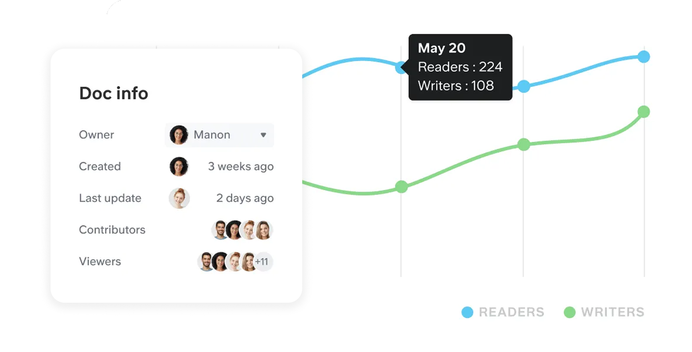 Keep track of what your team is reading and searching for, and easily make sure your latest docs get in front of the right people.
