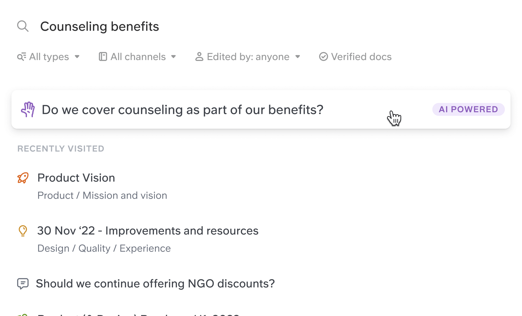 Use filters to specify where you want to look for your answers. Verified docs recommended.